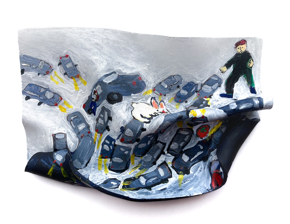 7. Traffic Jam, Sculpture, 8.5x11" polystyrene, acrylic, sharpie, 3.5” x 4.5”, 2023