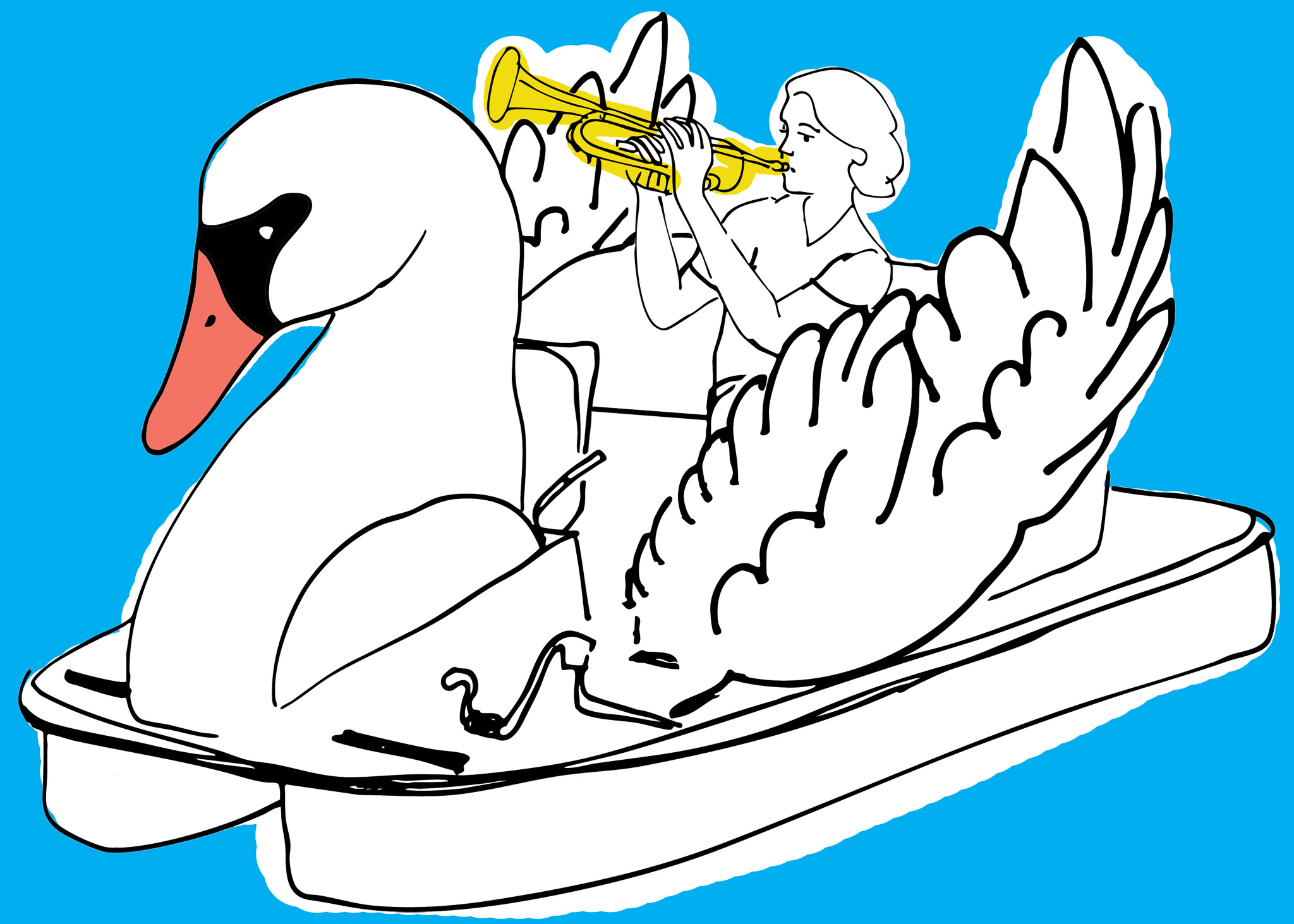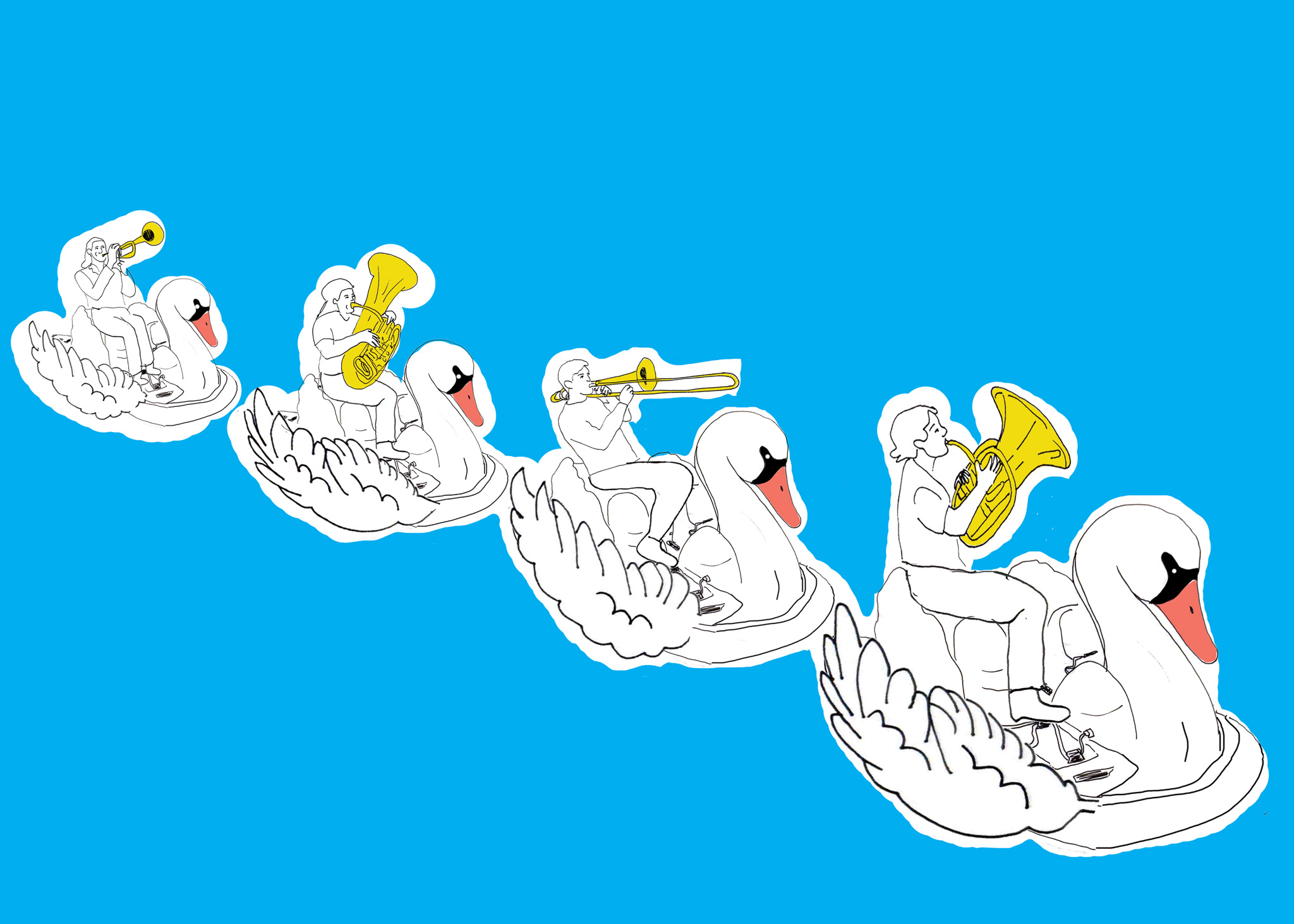 Swans is an upcoming audiovisual collaboration between Lia Kohl and Jess Bass on the Veterans Park Lagoon in Milwaukee.An open-to-the-public performance on swan pedal boats, in which Kohl will compose and direct an octet for brass instruments and Bass will create choreography and wing sculptures. The music is inspired by the calls of trumpeter swans and informed by the unique acoustics of music across water. The score will be a combination of notated and improvised portions. The choreography draws from swans’ flight and swimming patterns, creating a gliding processional parade across the Veterans Park Lagoon.