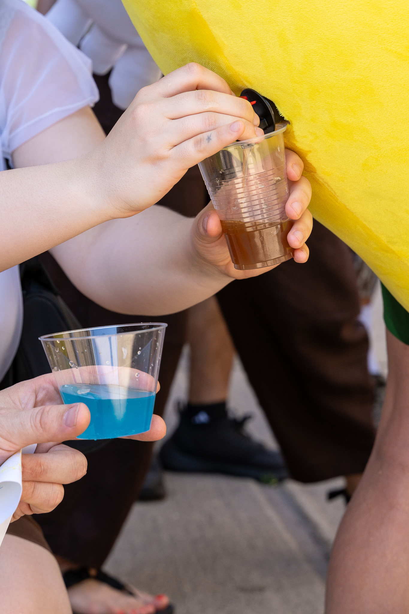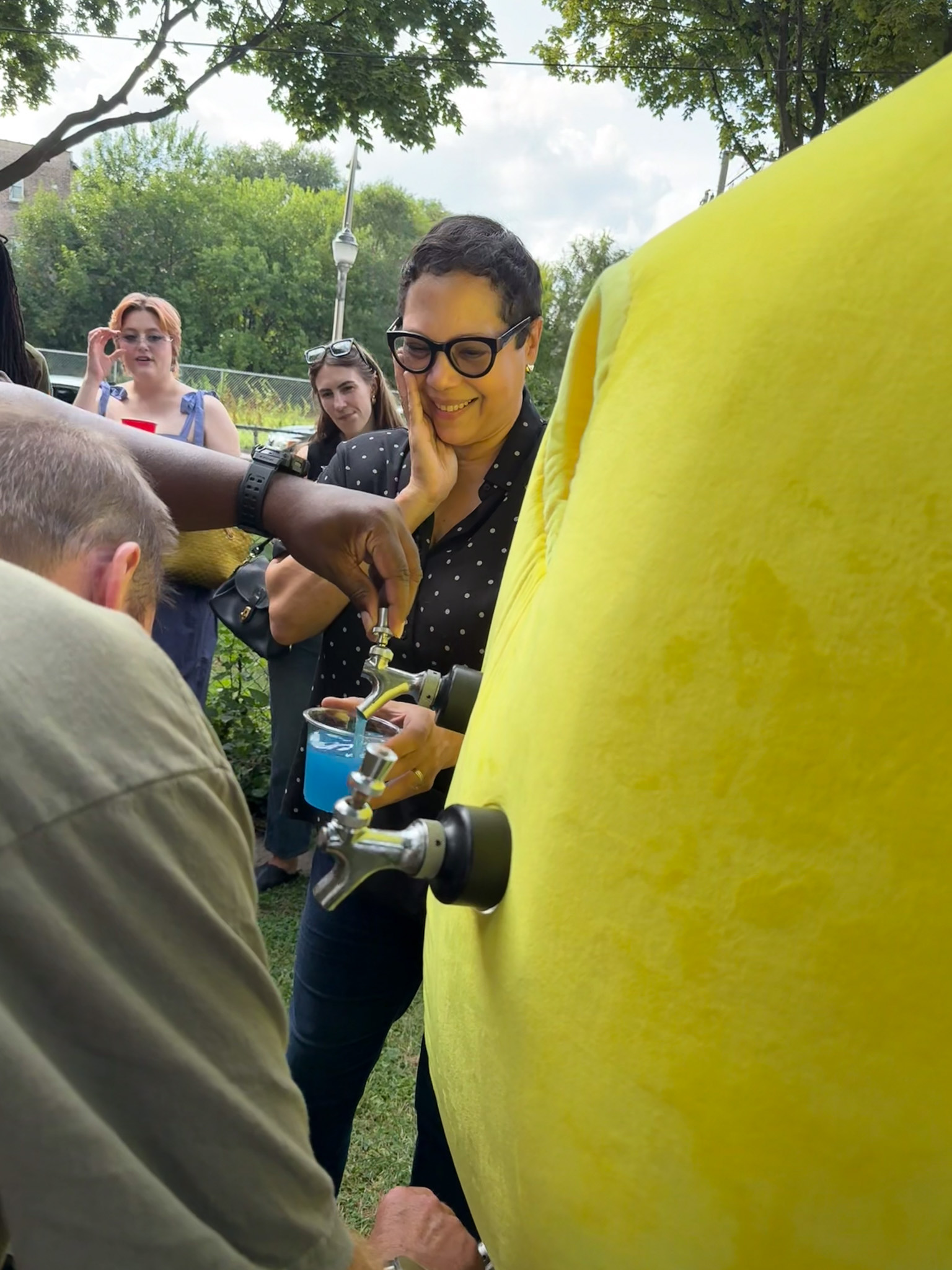 Audiences become active participants as they tap my lemon form. Each spout disperses a different lemonade-flavored liquid, of color and taste; and the liquid's pairing with a body part reflects both the literal function of my privates as sites of release, as well as my own subjective experience of trauma and societal expectation.