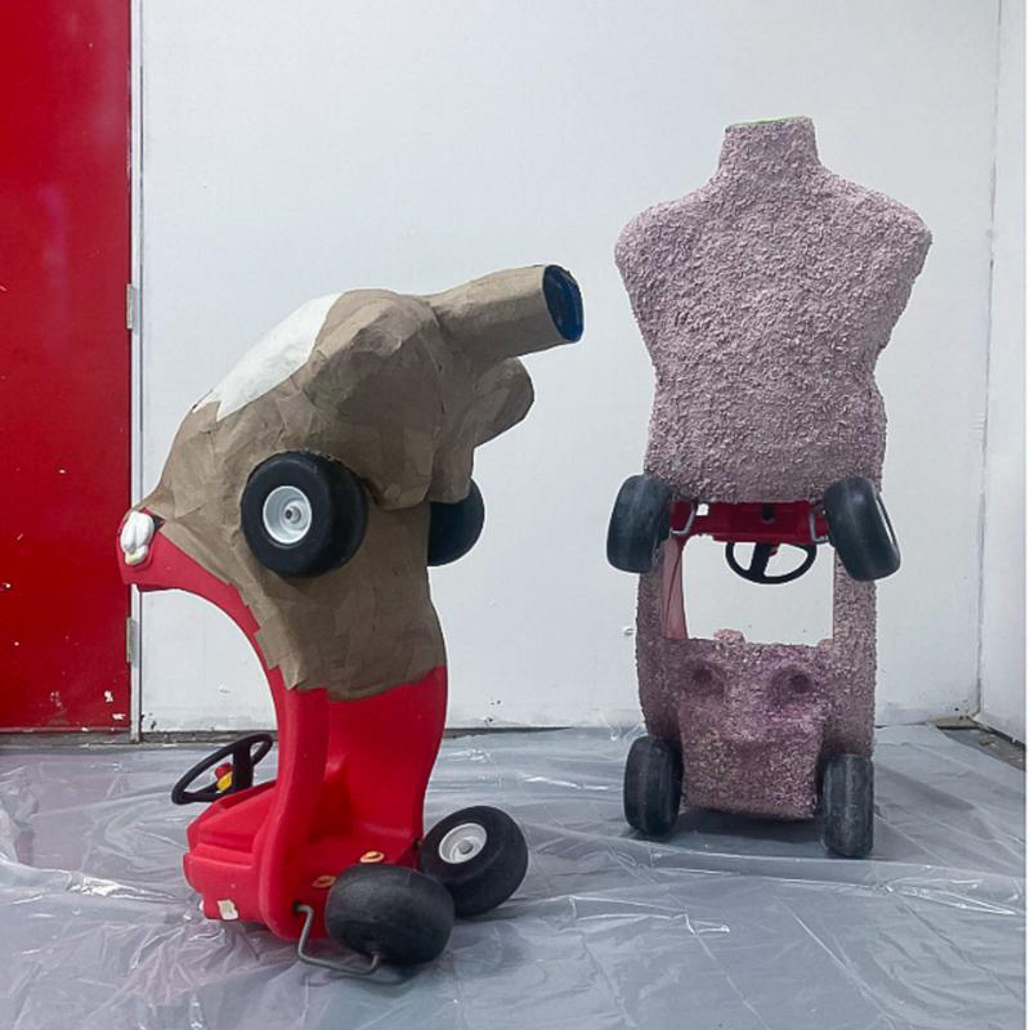 toy cars, felt, papermache